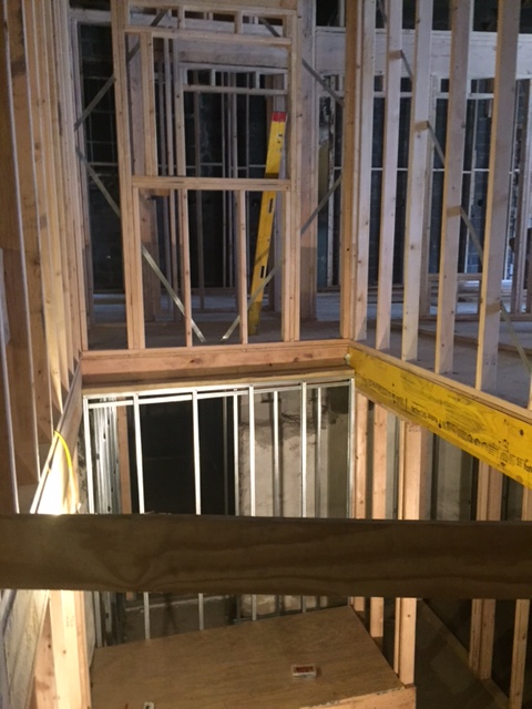 Kait managed to squeeze out every valuable inch of space including the basement.  David’s drawings brought her ideas to life. Here’s a view from the first floor looking down on the lower classroom and office space.  The lower classroom is set back from the front wall to allow natural light to filter down from our large storefront windows.